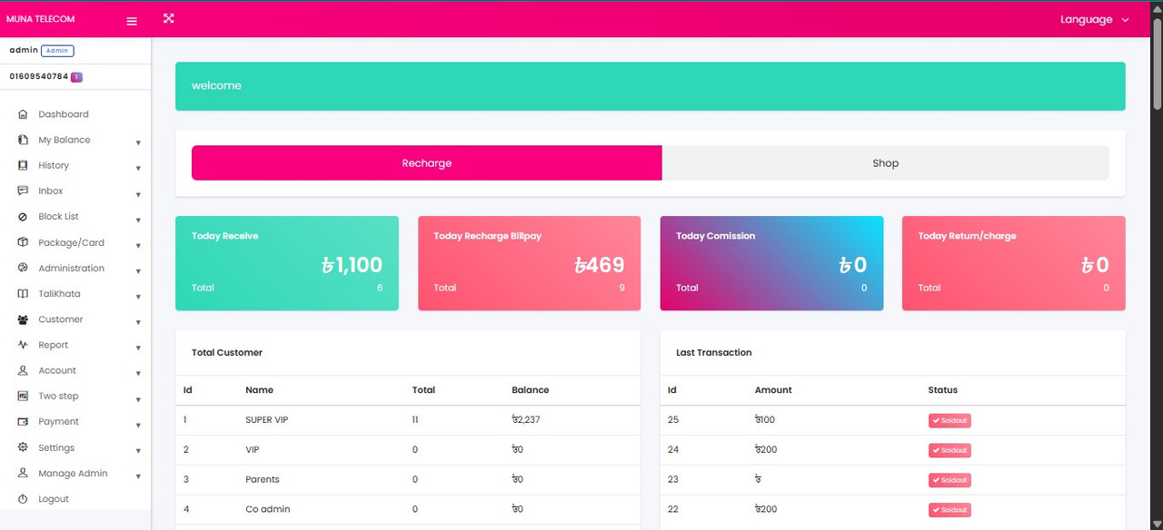 এই সার্ভার নিলে আপনি সিম এবং এপিআই এর মাধ্যেমে রির্চাজ সার্ভিস পরিচালনা করতে পারবেন।